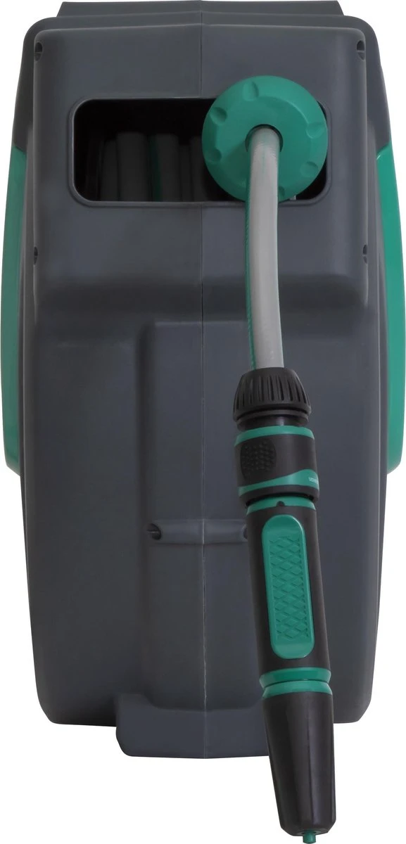 Het besproeien van je gazon, het bewateren van je planten, het wassen van je auto of het vullen van je zwembad is nog nooit zo gemakkelijk geweest. Deze wandslangenbox van VONROC bevestig je aan de muur en is na bevestiging 180° te draaien, zo kun jij alle kanten op en besproei jij eenvoudig en vlot alle mogelijke plekken in je tuin. Klaar met je bewateringsklus? De slang rolt automatisch weer op, dit voorkomt vieze handen en een in de knoop geraakte tuinslang dankzij de geïntegreerde slanggeleider. Handig toch?